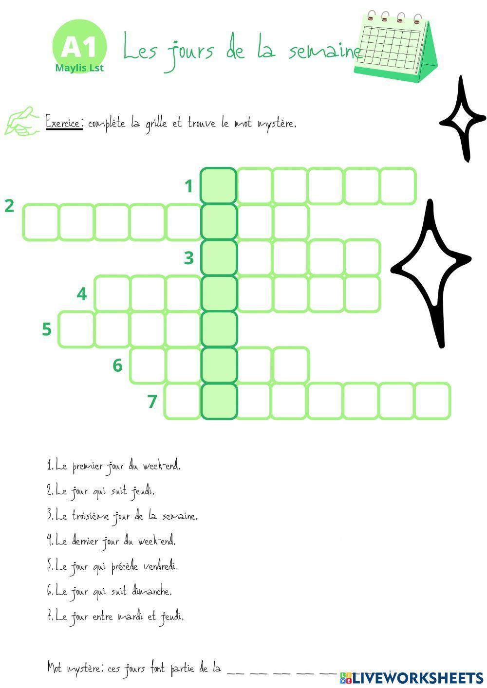 – C’est aujourd’hui? – Aujourd’hui, mercredi. – Et demain? C’est quel jour?- Demain, c’est .